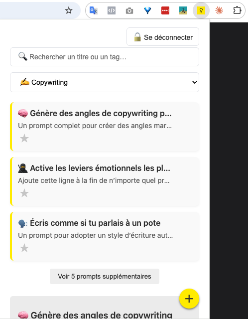 J'ai ouvert ChatGPT et je lui ai dit : "OK, je voudrais tester de créer une petite extension Chrome pour copier-coller des prompts plus facilement sur les IA." On a brainstormé un peu ensemble et il m'a expliqué étape par étape comment je devais faire.
